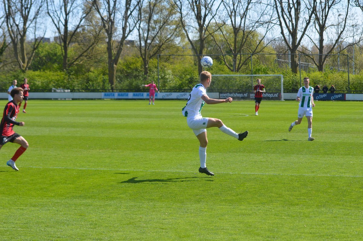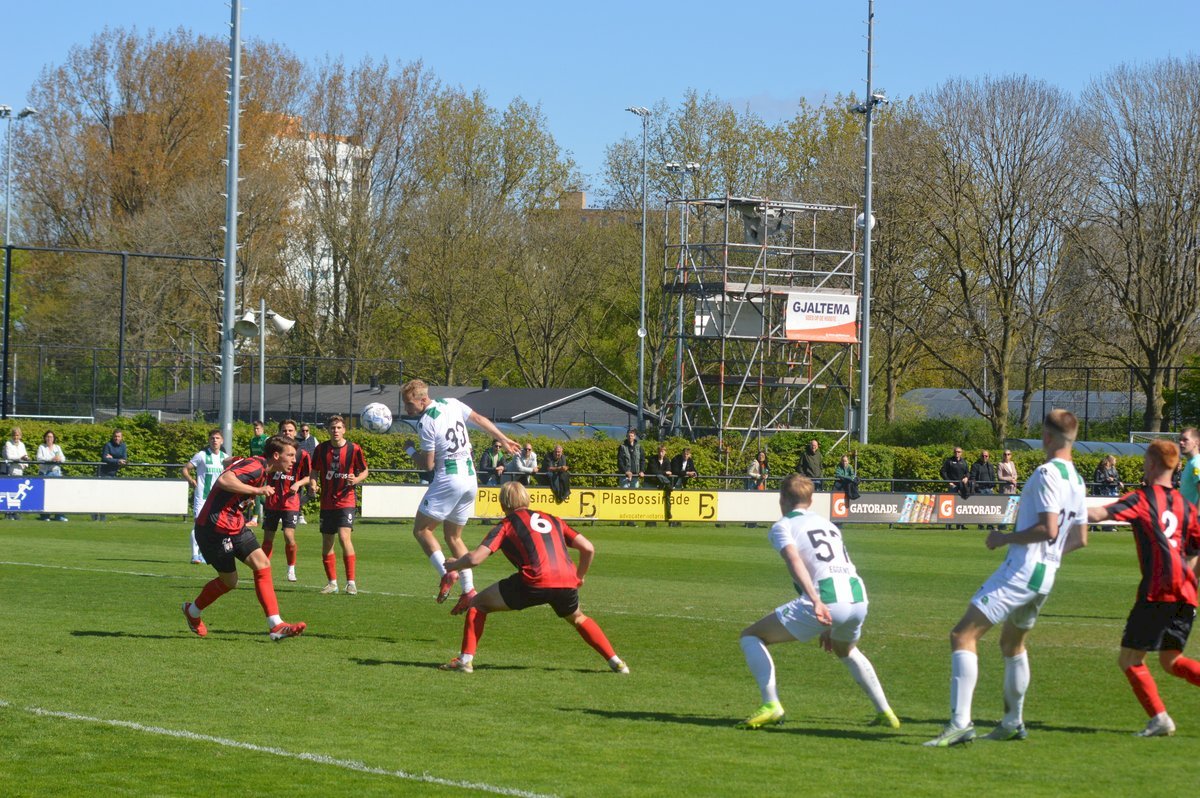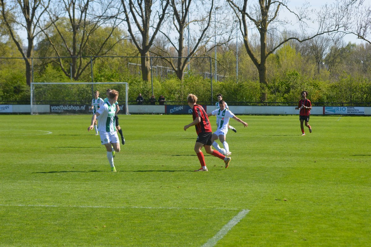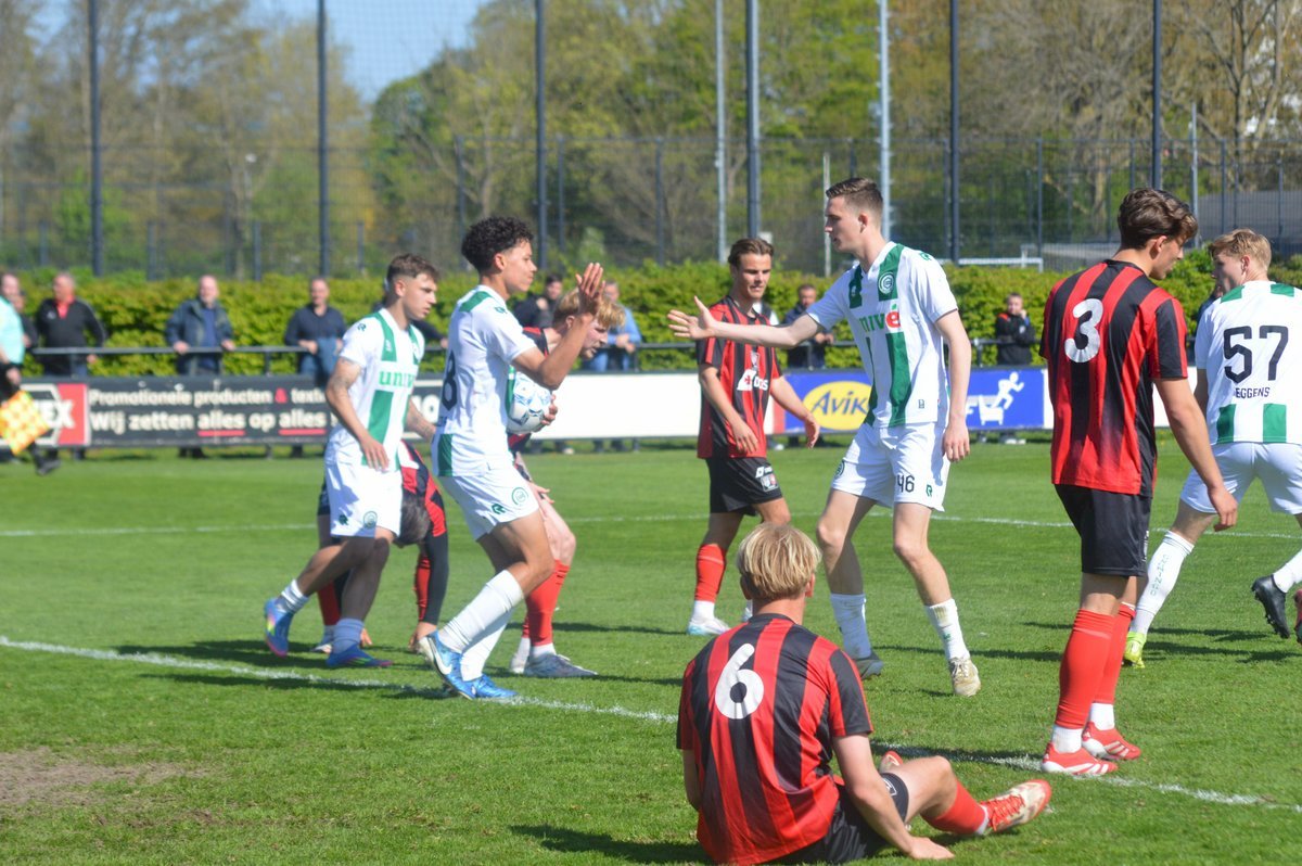 Uit een hoekschop vanaf de linkerkant kopt Alex Mortensen de bal net naast en weer een kans gemist. Aan de andere kant komt FC Twente/Heracles er eens uit maat Dirk Baron red prima met de voet op een schot. Marco Speelman schiet dan uit kansrijke positie over na een voorzet van Nils Eggens. Dan zijn de negentig minuten gespeeld en in de derde minuut van de extra tijd dan eindelijk de verdiende treffer voor FC Groningen als Robin Kelder vanuit een hoekschop de bal binnen tikt, 1-1. Lang duurt de Groningse vreugde niet want vanuit de tegenaanval is het Tom Kerssens die alles en iedereen veraast aan Groninger zijde en de 1-2 binnen schiet. Daar blijft het dan bij en steelt FC Twente/Heracles o21 drie punten in Groningen.